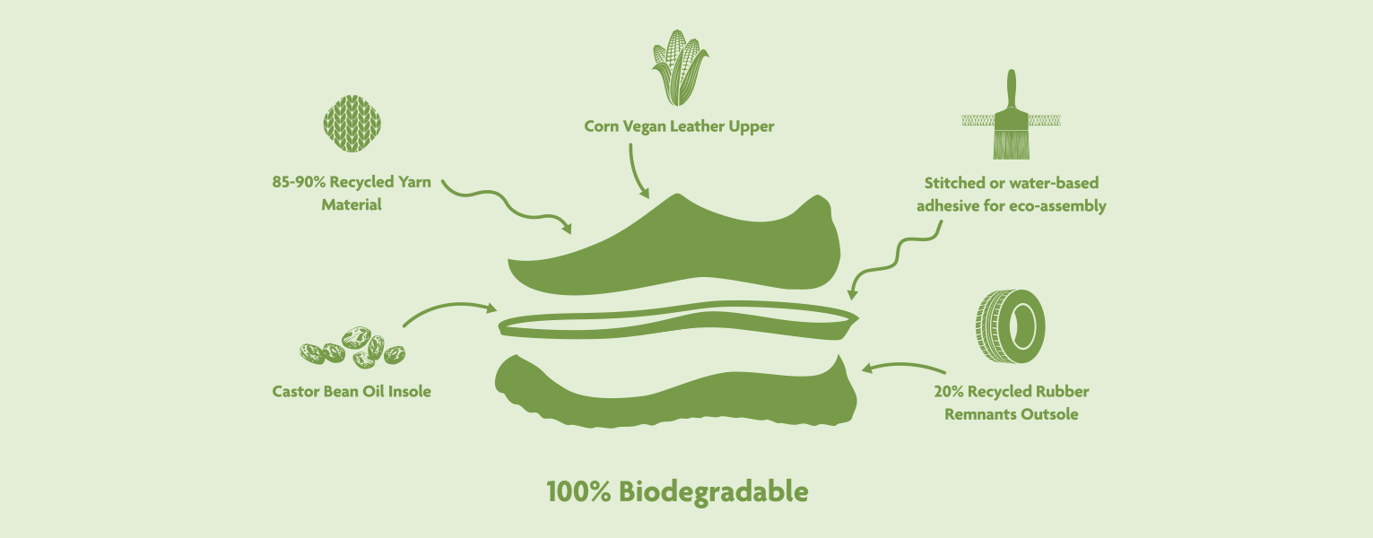 The creative strategy for the logo focused on merging two core concepts: a leaf (for plant-based) and the sole of a foot (for footwear). This led to a logo family that clearly embodied the theme of sustainability and biodegradable design.  In order to maintain a cohesive visual system with the Jambu brand, I expanded their existing palette to develop a new color scheme for the collection. To visually communicate the benefits, I designed an eye-catching infographic that translated complex features into easily digestible content, all while maintaining Jambu’s playful brand tone.